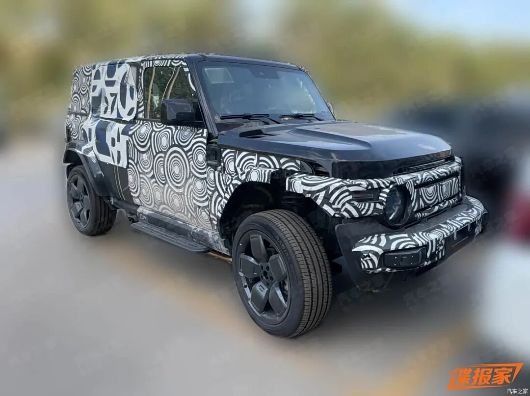 外观方面,V25与超级V23的前脸与尾部设计高度相仿,也是致敬经典的复古车设计,但车型尺寸明显更大,车身高度也疑似更高,有点非承载式SUV的感觉,对比旁边一侧的轿车,该车车身高度高出不少,离地间隙更高,但轮胎并不是越野胎。同时,新车的轴距更长,坊间传闻该车轴距为2780mm,比超级V23的2735mm更长。