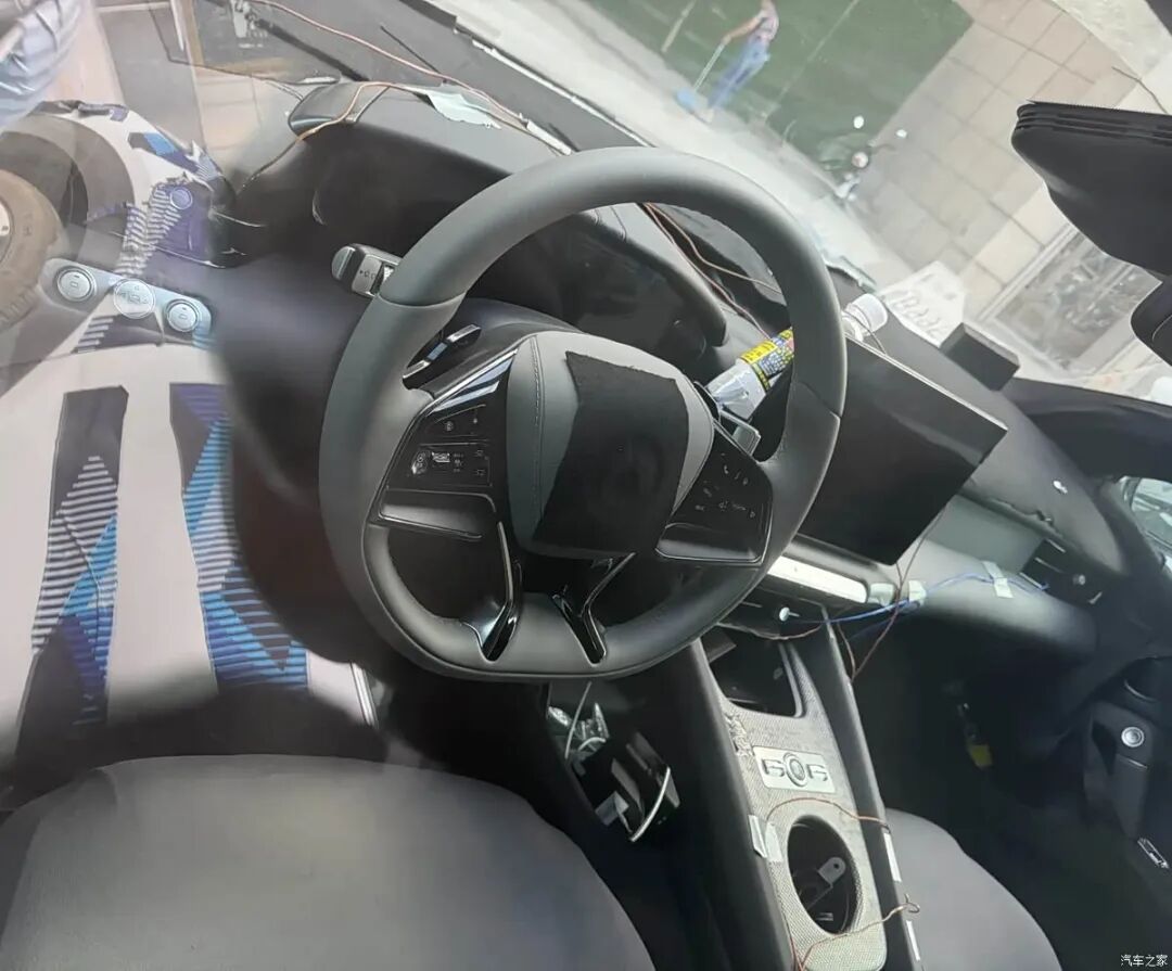 内饰方面则与目前腾势家族其它车型看齐,中央还是方形悬浮屏的设计,左侧应该包括一个仪表屏,车内的娱乐配置并未缩减,但取消了副驾娱乐屏。